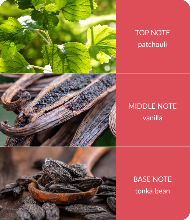 Fragrance notes: Patchouli, Vanilla & Tonka Bean